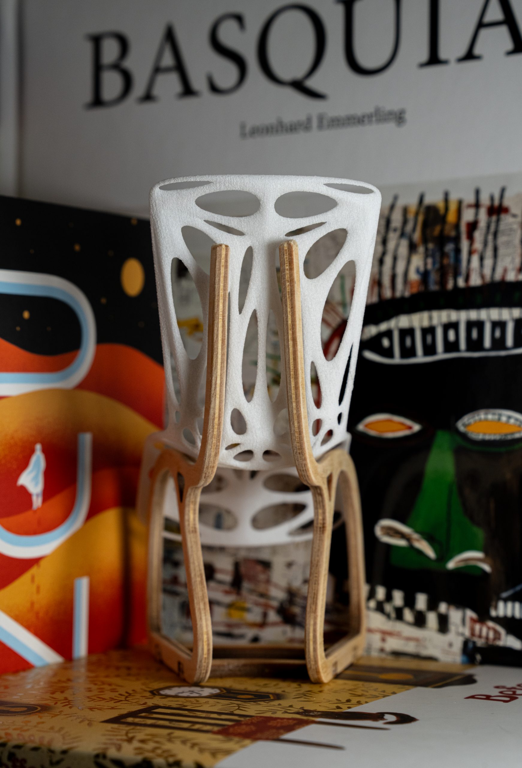 E2 represents the interfacing of cutting-edge digital development and timeless physical craft. Procedural modelling is an increasingly important tool in the digital design process, but must be grounded in a thorough understanding of the demands of physical production to be useful. In an effort to develop these skills further, I took part in a course in my second year of study that explored the interfacing of digital manufacturing and physical making in the context of furniture design. Our project brief called for the development of an object intended for seating, that was comprised of a procedurally designed, SLS printed component, and a traditionally designed and hand-made component.